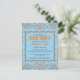 Borde floral naranja de inspiración india sobre un fondo azul acuático. El amplio borde de la impresión es abierto y amplio. Un moderno marco azul acuático oscuro se acentúa con un toque naranja. La invitación es fácil de personalizar. Forma parte de la colección Naranja y Aqua Blue Indian.