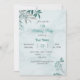 romántico azul verde azulado deja invitación a fiesta botánica de cumpleaños