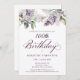 Las lilatas moradas de acuarela suave crean una invitación de cumpleaños 100 en primavera de bonito. La tipografía añade una estética elegante. Todo el texto es editable para que pueda establecer el tono correcto. También puede cambiar fácilmente fuentes y color. Esta invitación para cumplir 100 años está disponible tanto en el material de cartón tradicional como en una versión descargable. Forma parte de la colección Purple Spring Lilac Flower. Le permite elegir un tema y, a continuación, crear fácilmente una suite de invitados única, carteles de bienvenida y decoración fiesta. La planificación fiesta se vuelve divertida y divertida.