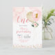 Invitación Invitati, primer cumpleaños de Chica de globos ros