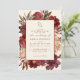 Esta elegante invitación a una boda floral borgoñona y roja muestra los detalles de su boda con letras modernas, enmarcada en un marco ovalado de color beige polvoriento con flores de acuarela y follaje botánico en tonos tierra inspirados en el desierto, con color burdeos, rojo, marrón y marfil con un texto de color cobre cálido.el toque de marco vintage hace única esta invitación floral vintage.Una invitación a la boda perfecta para un crimestiza en verano, otoño de primavera y bodas de invierno.