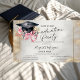 Watercolor floral graduation cap with pink bow, and gold frame on a gray and gold background.