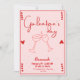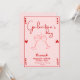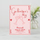 Red and pink Galentines Day invitation with hand-drawn heart and glasses. Perfect for getting together with friends.