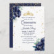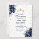 Invitación Iris azul marino y Purpurina Tiara Quinceanera
