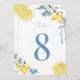 Invitación Italian Blue Bow Lemon Wedding 5x7 Table Number