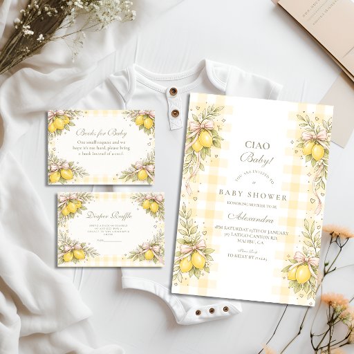 Invitación Italian Lemon Gingham Baby Shower