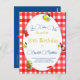 El diseño atemporal de limones soleados y patrón rojo invoca un ambiente veraniego para tu día especial.