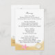 Conchas de oro y estrellas de mar rosadas decoran la tarjeta de información de esta bonita invitación de boda de playa. Itinerario en un lado y alojamiento en el otro. Personalice el texto como prefiera.