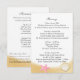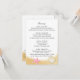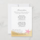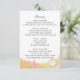 Conchas de oro y estrellas de mar rosadas decoran la tarjeta de información de esta bonita invitación de boda de playa. Itinerario en un lado y alojamiento en el otro. Personalice el texto como prefiera.