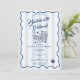 Un colorido diseño de tema de casino de cartas de juego y dados dibujados a mano. Un hermoso diseño perfecto para fiestas de fin de semana de Despedida de Soltera. Esta invitación de Despedida de Soltera incluye un itinerario de fin de semana en la parte posterior. Una invitación de Despedida de Soltera retro moderna vintage con rayas azules y blancas.