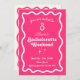 Infundir su fin de semana de soltera con energía vibrante usando nuestra Invitación Itineraria de fin de semana de Bachelorette de la ola Retro Caliente! Este diseño animado y elegante crea el ambiente perfecto para un fin de semana de celebración. Las olas rosadas calientes le dan un toque lúdico, creando un itinerario de moda para la escapada especial de la futura novia. Personalizable total para capturar la esencia de su evento. ¡Pida ahora y anticipa un fin de semana de soltera lleno de emoción, risas y recuerdos duraderos!