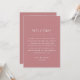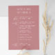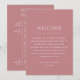 Bienvenidos a sus invitados con esta elegante invitación de itinerario de fin de semana de boda en tono rosa polvo. Con un diseño de línea de tiempo elegante y tonos florales suaves, esta tarjeta es perfecta para compartir su horario de boda y eventos de un vistazo. Ideal para bodas de destino, celebraciones de fin de semana completas o reuniones de varios días. Totalmente personalizable con los detalles de su boda, colores y línea de tiempo. Una hermosa manera de mantener a sus invitados informados y emocionados por el gran día. Disponible como tarjeta impresa o descarga digital para imprimir fácilmente.
