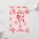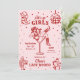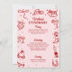 Esta invitación y itinerario de fin de semana de despedida de soltera rosa y rojo presenta un audaz tema retro del oeste "último rodeo" con ilustraciones juguetonas de estilo doodle, perfecto para celebrar al estilo cowgirl en cualquier lugar. La parte delantera muestra a una vaquera segura de sí misma recostada en una copa de martini, rodeada de doodles caprichosos de botas de vaquero, sombreros, bolas de discoteca, cactáceas y estrellas, mezclando el encanto rústico del oeste con vibrantes ambientes de fiesta. La parte trasera muestra un itinerario completo de fin de semana enmarcado por iconos de doodle coordinados como lazos, botas, cócteles y herraduras para un aspecto divertido y cohesivo. Con su vibrante paleta de colores, detalles descarados dibujados a mano y diseño coincidente de adelante hacia atrás, esta