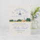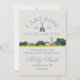 Relájate en el lago con esta invitación de itinerario náutico azul de fin de semana en el lago para despedida de soltera con estilo costero. Un diseño simple y clásico que presenta tipografía moderna, un boceto escénico de acuarela dibujado a mano y acentos junto al lago. Este itinerario de fin de semana es perfecto para relajarse en los fines de semana de despedida de soltera junto al lago.