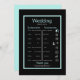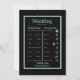 Tarjeta de itinerario negra y azul turquesa. La colección elegante será perfecta para una celebración de jardín interior o exterior para una boda, despedida de soltera, baby shower o una celebración de estilo campestre. Toda la colección es personalizable. Disfruta tu celebración, ¡salud!