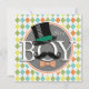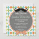 Cuto, divertido diseño de la ducha de bebé de Boy con un colorido patrón de estilo de argyle; patrón naranja, verde, verde azulado y amarillo. Diseño de estilo vintage con sombrero superior, bigote divertido y tazón naranja retro. Es una ducha de bebé o diseño de rociado de bebé que puedes personalizar. Visita nuestra tienda, Favors and Decor, para muchos más grandes regalos y decoraciones fiestas para estufas y decoración de bolsos de cartón.