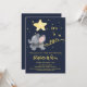 Esta invitación a la ducha de bebé tiene un lindo elefante bebé con un globo bajo la brillante noche. Puede personalizar el texto haciendo clic en el botón "Personalizar" y cambiar el color haciendo clic en el botón "Editar usando la herramienta de diseño". ¡Que tengas un día encantador, amigo mío!