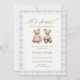 Invitación Its Twins Pastel Plaid Teddy Bear Baby Shower