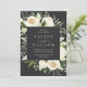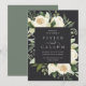 Nuestra invitación a la boda de Marfil Bloom rodea los detalles del día de la boda con un marco cuadrado de vegetación acuática pintada, hojas de eucalipto, follaje botánico y flores blancas de rosa y peonía.