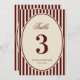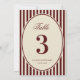 Invitación Ivory Burgundy Stripes Retro Wedding Table Number
