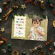 Let your full-size photo shine with this festive holiday photo card! This playful holiday card features a decorative, wavy frame on the left side. The greeting "Happy Merry Everything" is a non-traditional greeting that can apply to any and all holidays that take place during the holiday season. The words are made up of a variety of colors to add a touch of whimsy to the design. Just beneath the greeting is a tiny heart, and space for the customer's name. The back of the card features a coordinating wavy pattern. This fun card is perfect for kids!