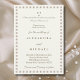 Celebrate your special day with this personalized Pearl Wedding Invitation, a timeless and classic design that exudes elegance and charm. This invitation features a delicate border of pearls, beautifully framing the layout with a soft, sophisticated touch. The combination of mocha modern typography and graceful calligraphy script fonts creates a perfect balance of contemporary and romantic style against a vintage ivory background. At the center, a personalized monogram of the couple's initials is accented by a single pearl, adding a refined and meaningful detail. With its simple, chic, and minimalist aesthetic, this invitation is ideal for couples seeking understated luxury and enduring style.
