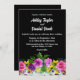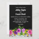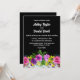 Esta elegante invitación a la boda floral es perfecta para un boda floral moderno. El diseño romántico presenta un colorido ramo de flores de acuarela y una elegante tipografía blanca sobre un fondo negro.