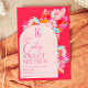 Audaz y vibrante jardín de Bonito rosa, rojo y azul floral dulce fiesta de 16 años con audaces flores abstractas pintadas a mano con un elegante y moderno guión de broche en audaz fucsia roja. Perfecto para la primavera, fiesta de cumpleaños de verano.