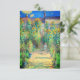 Tarjeta con la pintura al óleo de Claude Monet en el jardín del artista en Vétheuil (1880). Los girasoles y otras hermosas flores azules y rojas bordean un camino ajardinado donde los niños dan un agradable paseo. Un gran regalo para los aficionados al impresionismo y al arte francés.