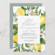 Este moderno jardín de limoneros celebremos que la invitación es perfecta para una fiesta de compromiso de primavera o verano, boda tras fiesta, retiro, graduación o cualquier evento feliz. El diseño rústico mediterráneo presenta limones acuáticos brillantes y hermosos con flores blancas bohemias y elegantes hojas verdes.
