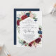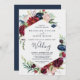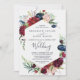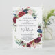 Esta tarjeta de invitación a bodas en el jardín de otoño es perfecta para una boda en otoño. El diseño presenta unas impresionantes flores de color rosa, rojo, marino y burdeos, flores de flores y hojas verdes dispuestas en un marco floral de otoño animado.