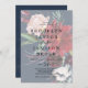 Esta invitación de boda floral descolorida de la marina del jardín del otoño es perfecta para una boda en otoño. El diseño floral presenta unas impresionantes flores de color rosa, rojo, marino y burdeos, flores de flores de flores y hojas verdes dispuestas en una corona de otoño animada con tu texto.