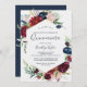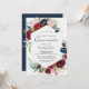Esta invitación de la quinceañera de borgoña al jardín de otoño es perfecta para una fiesta de cumpleaños número 15. El diseño presenta unas impresionantes flores de color rosa, rojo, marino y burdeos, flores de flores y hojas verdes dispuestas en un marco floral de otoño animado.
