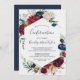 Esta invitación de confirmación de borgoña al jardín de otoño es perfecta para un evento de otoño. El diseño presenta unas impresionantes flores de color rosa, rojo, marino y burdeos, flores de flores y hojas verdes dispuestas en un marco floral de otoño animado.