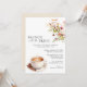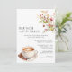 Invitaciones para el brunch de la ducha con temática de café con flores rojas y amarillas. El reverso es de un color blanco cálido.