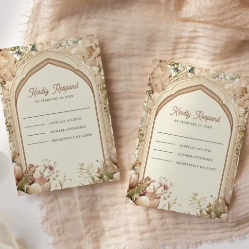 Disfrute de esta elegante invitación nupcial con hermosos pavos reales y arcos de época. Simplemente agregue los detalles de su evento en esta plantilla fácil de usar para convertirla en una invitación única.