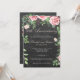 Invitación elegante y sofisticada para el aniversario de bodas cincuenta con rosas peonías pintadas a mano de color rosa y rojo burgundy con hojas y follaje verdes y con una tipografía de caligrafía editable de moda y elegante sobre un fondo oscuro de pizarra de tiza gris. +++++++++++ Adecuado para una celebración de primavera, verano o jardín de otoño / aire libre / cumpleaños floral vintage / aniversario / fiesta de celebración .