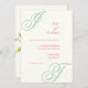 Diseño minimalista simple basado en el monograma inicial suave del novio y la novia. Colores de Pera Inglesa y Amapola de Primavera, un verde marino claro y rosa cálido, sobre un fondo marfil. Los colores son completamente personalizables en la herramienta de diseño. Se revierte a un suave ramo floral de acuarela en los colores de un jardín inglés de primavera.