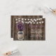 Luces de cuerda de frasco de albañil floral de lavanda rústica para tarjetas de recepción de boda de granero.