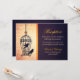 Estas tarjetas de recepción con sobre presentan una caprichosa jaula para pájaros con espirales y un corazón, y dos pájaros lindos, en negro tinta, colgando contra un fondo de papel texturizado crema con escritura a mano desvanecida. Una cinta dorada brillante separa una barra lateral negra, que contiene el texto de recepción en crema y dorado. Las palabras, en fuentes alternas de escritura y serif clásicas, son completamente personalizables. El texto se puede cambiar para crear una tarjeta con instrucciones, información de alojamiento y más.