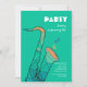 Invitación contemporánea con antecedentes verde azulados y un saxofón estilizado. La tarjeta es fácil de personalizar con su redacción, tipo de letra, color de fuente, opciones de forma de papel y elección de seis tipos de papel. ¿No es exactamente lo que buscas? Todos nuestros productos pueden ser personalizados diseñados para satisfacer sus necesidades sin cargo adicional. Simplemente contacte con nosotros en heartfelthelper@gmail.com Productos de coordinación disponibles: ¡Simplemente pregúntennos!