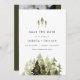 Esto ahorra la fecha con los pinos de color acuático rústico y un tipo de letra escrito a mano bohemio. Edite fácilmente toda la redacción de esta invitación para satisfacer mejor sus necesidades. Añade tu foto a la parte posterior para un toque personal. Esto ahorra la fecha perfecta para tu boda boho de los bosques de montaña.