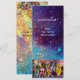 Diseño floral caprichoso y elegante con una planta de mariposa mágica, florituras, hadas, caballos, nocturno musical en vibrantes colores azul verde, rojo, amarillo y blanco. Pintura acrílica sobre lienzo, pintura de técnica mixta con láminas doradas y plateadas. Este diseño artístico y fresco es fácilmente personalizable con tu texto e iniciales como ceremonia de boda, anuncio nupcial, concierto, aniversario, programas, tarjetas de asiento, agradecimiento, fiestas de cumpleaños dulces 16, fiestas de compromiso romántico, vacaciones, oficina, reuniones familiares, celebraciones de Nochevieja, aniversarios, reuniones, recital o casi cualquier evento que desees.