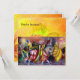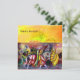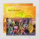 Diseño floral elegante y caprichoso con una planta de mariposa mágica, florituras, hadas, caballos, nocturno musical en vibrantes colores azul verde, rojo, amarillo, blanco. Pintura acrílica sobre lienzo, pintura de técnica mixta con láminas doradas y plateadas. Este diseño artístico y fresco se puede personalizar fácilmente con su texto y iniciales como ceremonia de boda, anuncio nupcial, concierto, aniversario, programas, tarjetas de lugar, agradecimiento, fiestas de cumpleaños dulces 16, duchas de compromiso romántico, vacaciones, oficina, reuniones familiares, celebraciones de Nochevieja, aniversarios, reuniones, recital o casi cualquier evento que desee.