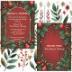 A red berry, green holly Christmas party invitation to 'JINGLE and MINGLE' with family and friends. This festive invitation card has a red and green combination with border made of motifs. Reverse side has a matching artwork. The text uses modern typography. The text can be easily replaced with your words in the template.