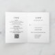 Moderno todo en una sola invitación de boda plegada con un minimalista diseño negro con sus nombres en un gran tipo de letra a lo largo del lado izquierdo y superior. El panel de la tarjeta del recinto tiene un código QR opcional. Puede quitar el código QR en la herramienta de edición de diseño. Este diseño es lo suficientemente sencillo para un boda formal, pero hace una declaración audaz.