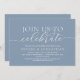 Modern Romantic Calligraphy, classy dusty blue, Wedding Rehearsal Dinner invitation card (Join us to celebrate). It is perfect for your wedding rehearsal dinner celebration party, before your best day. Add your details in matching lettering.