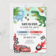 Invitación Joint Dinosaur & Race Cars Sibling Birthday