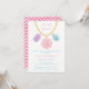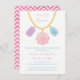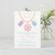 ¡Seamos glamorosos y bonitos! Deguste a los mejores amigos del chica de cumpleaños con una diy sesión de joyería hecha de collares, pendientes, pulseras y otros. Las joyas hacen que sea memorable llevar a casa los regalos del fiesta. El diseño presenta joyas de diversas formas, cortes y colores de rosa, púrpura y azul como colgantes del collar. Uso de textura de acuarela digital.Personalice fácilmente los detalles de su fiesta. Al revés hay un patrón de zigzag color rosa y blanco sobre una textura acuarela. Gran concepto para una fiesta de cumpleaños de chica.