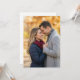 This wedding invitation features a heartwarming photograph of two individuals standing closely together, smiling against a backdrop of blurred autumn foliage in warm hues. The design showcases a realistic representation style with an earthy color palette including deep navy blue, rich burgundy, and light gray, creating a cozy and intimate atmosphere. The layout is centered, emphasizing the affectionate connection between the subjects, making it perfect for capturing the joy and warmth of your special day.